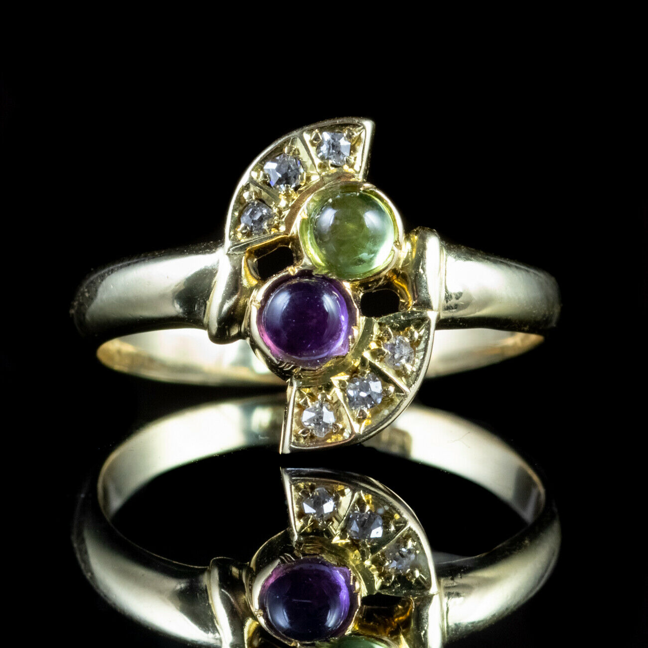 Suffragette Ring Amethyst Peridot Diamond 18ct Gold c.1920
