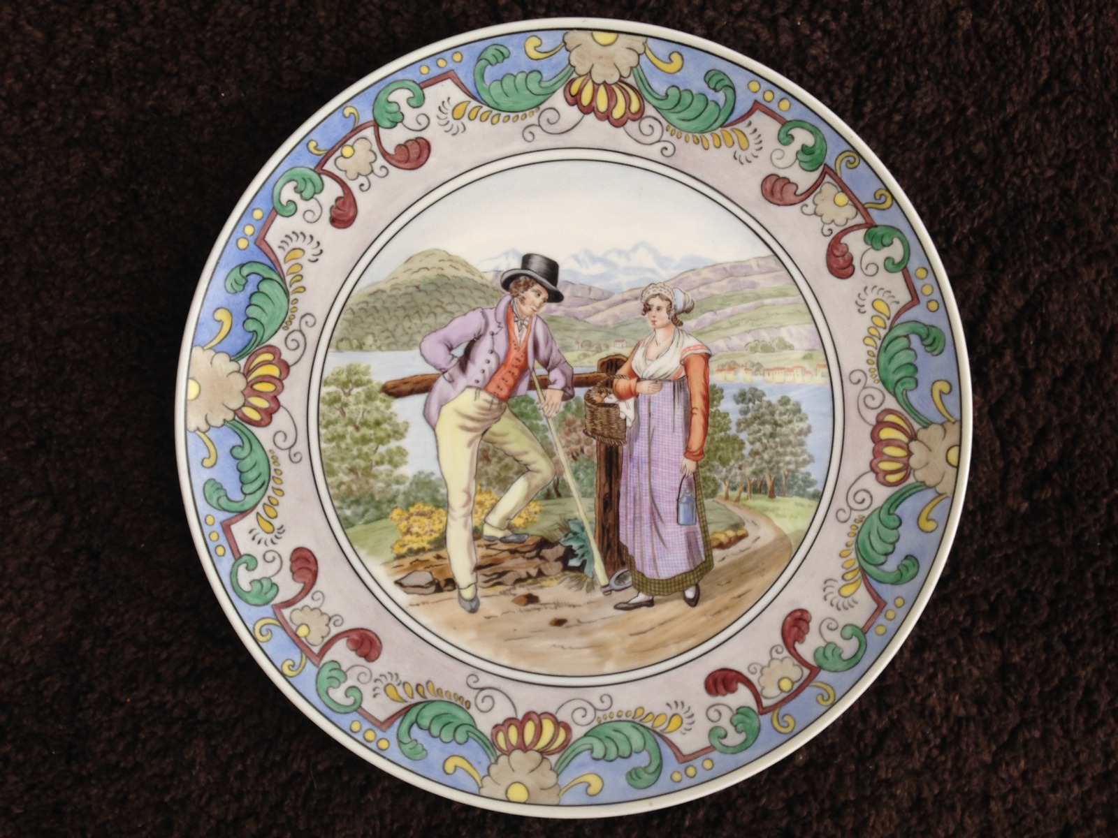Suisse Langenthal Handpainted Porcelain Large Wall Marriage Plate Signed by Artist