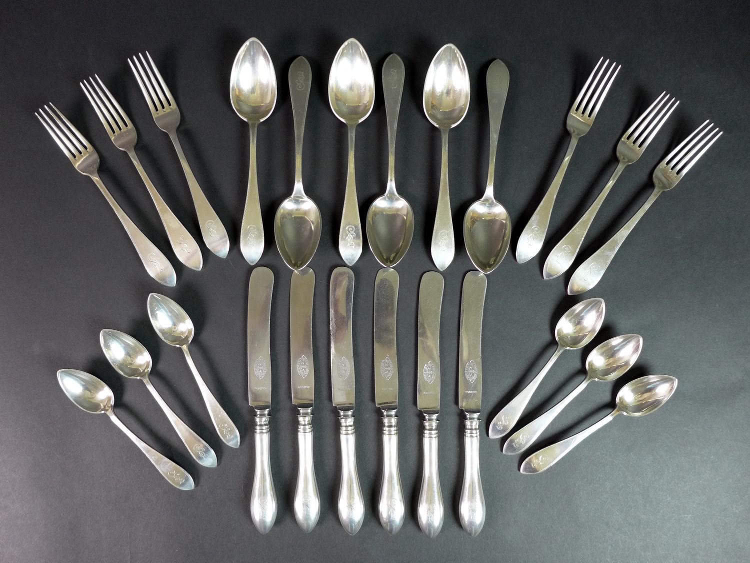 Suite of Late 19th Century Latvian 875 Grade Silver Swedish Steel Cutlery
