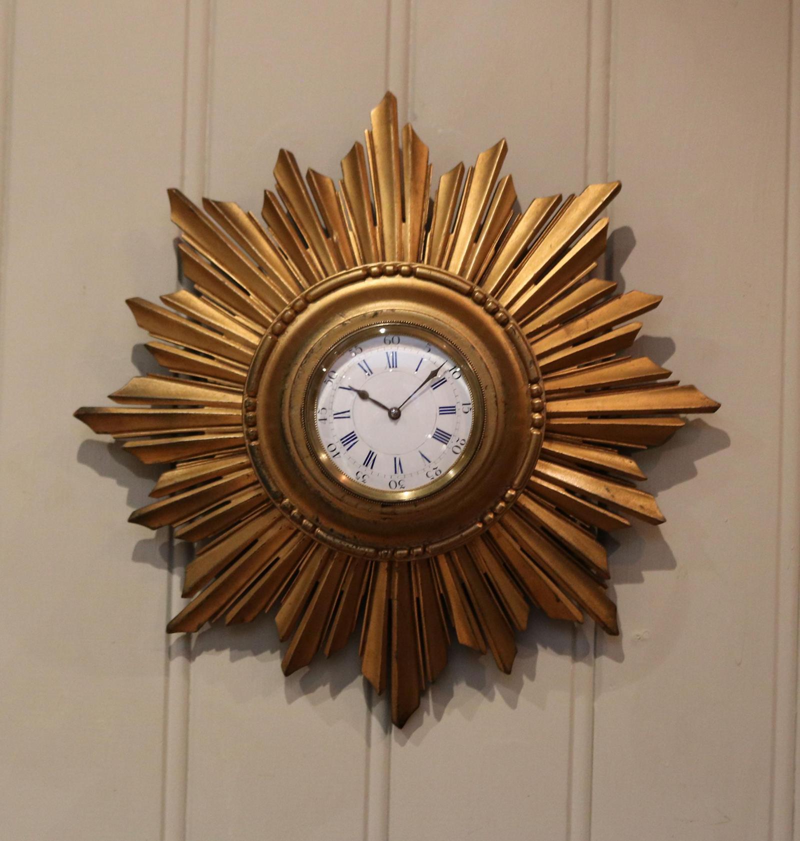 Sunburst Carved Giltwood Wall Clock (1 of 9)