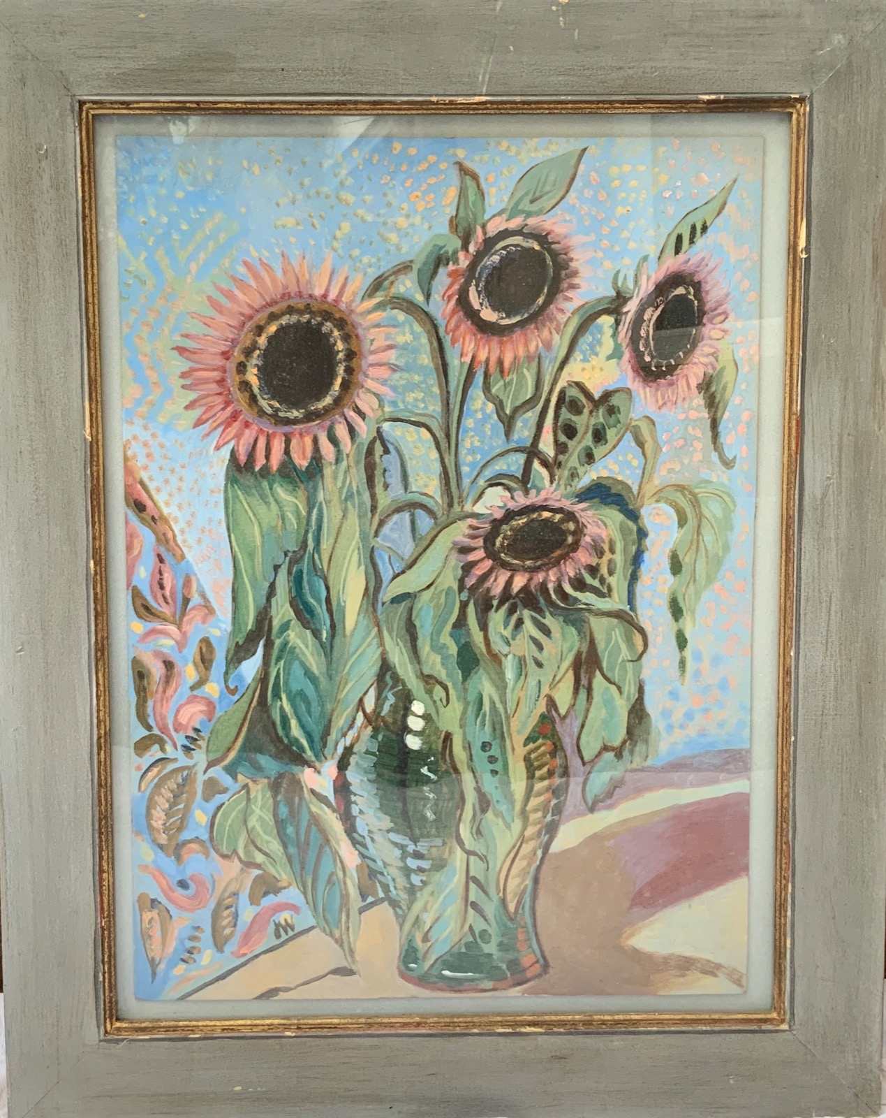 “Sunflowers” Oil On Paper, Framed Behind Glass, Original, Signed