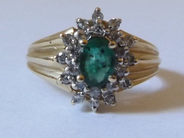Super 14ct Gold Emerald & Diamond Ring c.1940