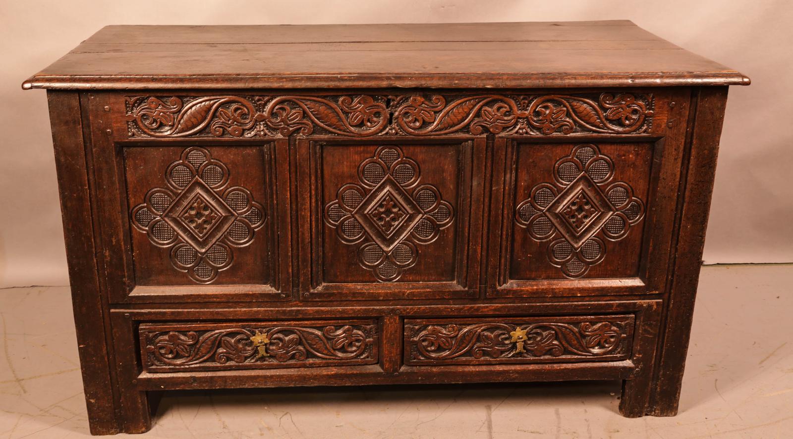 Super 17th Century Oak Dower Chest