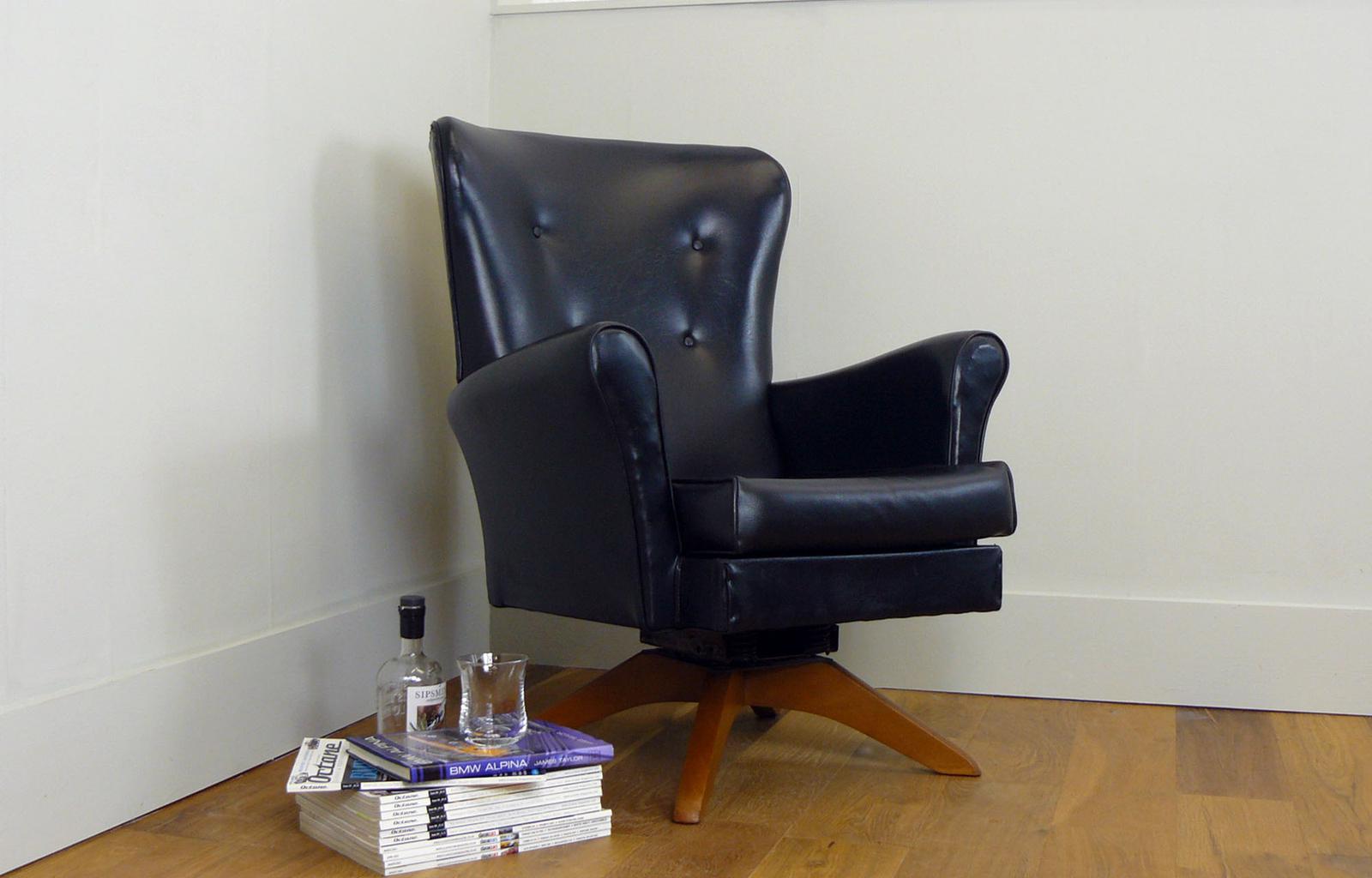 Super 1960s Vintage British Black Swivel Lounge Chair (1 of 11)