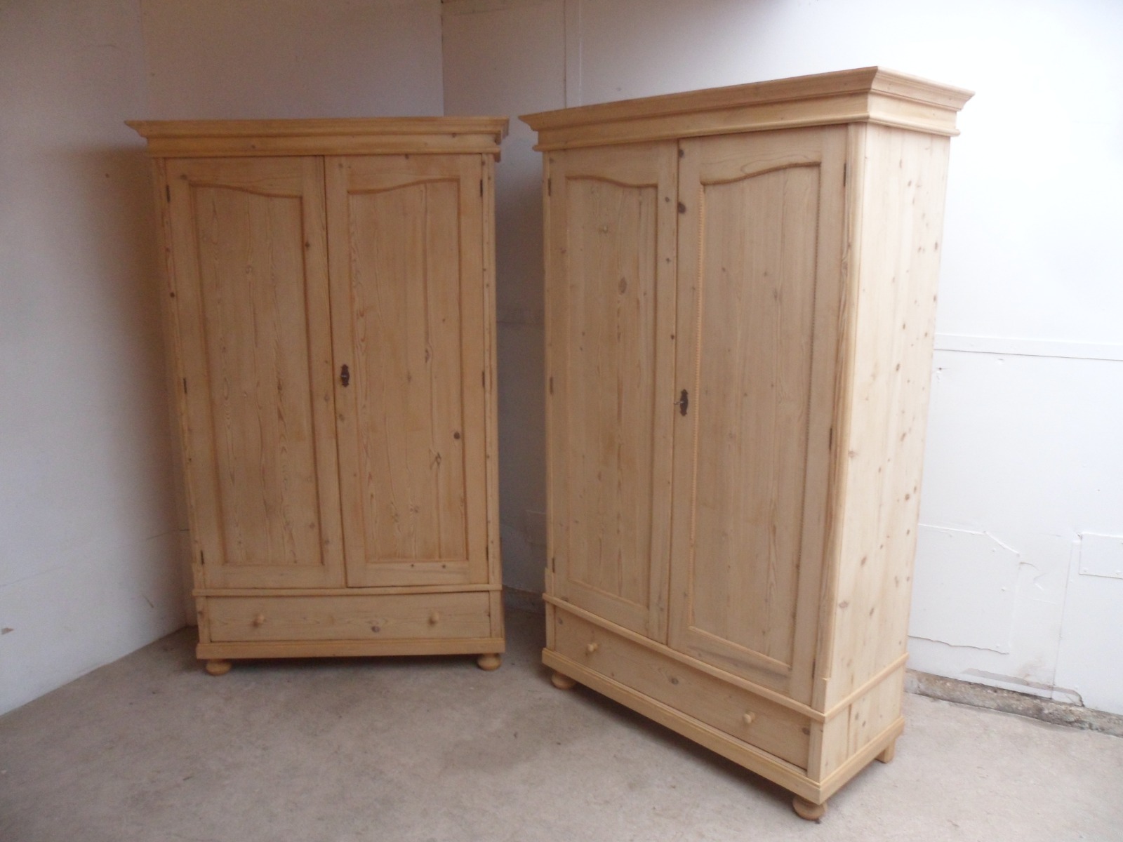 Super Beaded Pair of Old Pine Knockdown Wardrobes to wax / paint