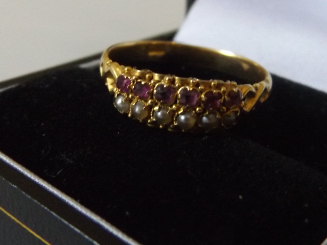Super Edwardian 18ct Gold Ruby & Seed Pearl Ring