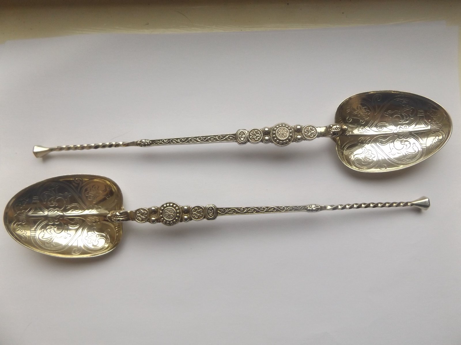 Super Large Pair of Silver Anointing Spoons Birmingham 1910
