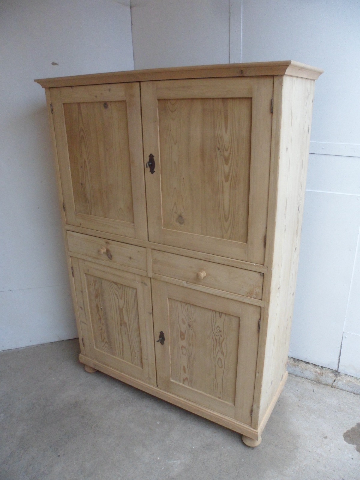 Super Nice Large Pine 4 Door 2 Drawer Storage Cupboard to wax / paint