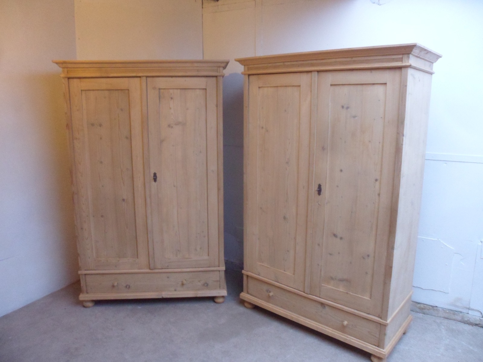 Super Nice Pair of Old Pine Plain Knockdown Wardrobes to wax / paint