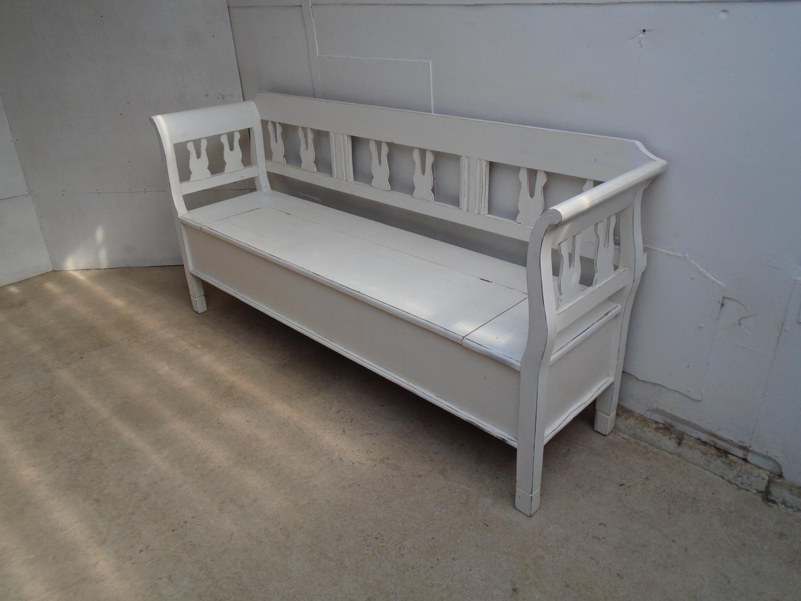 Super Painted White Antique Pine 3 Seater Box Settle / Bench