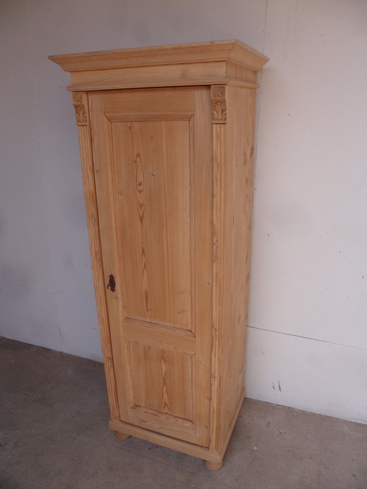 Super Pine Tall Thin 1 Door Child's Wardrobe / Cupboard to Wax / Paint c.1920