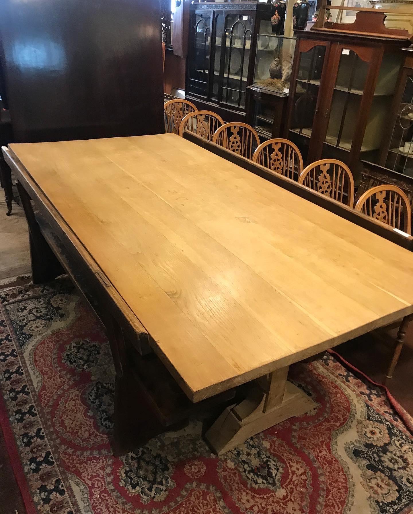 Super Quality English Light Oak Refectory Table with Benches