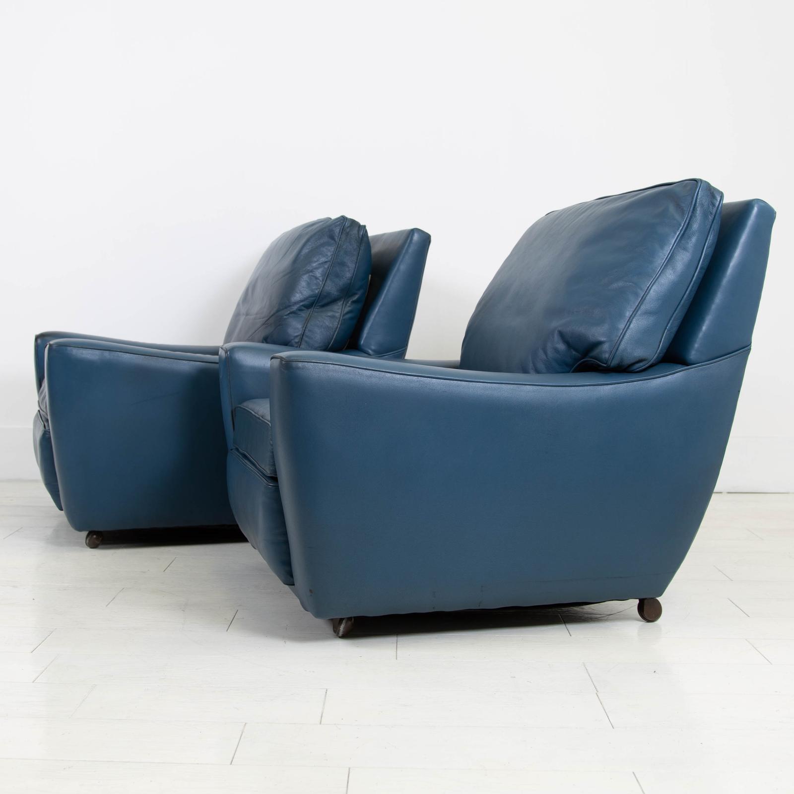 Super Quality Pair of French Blue Leather Armchairs c.1940