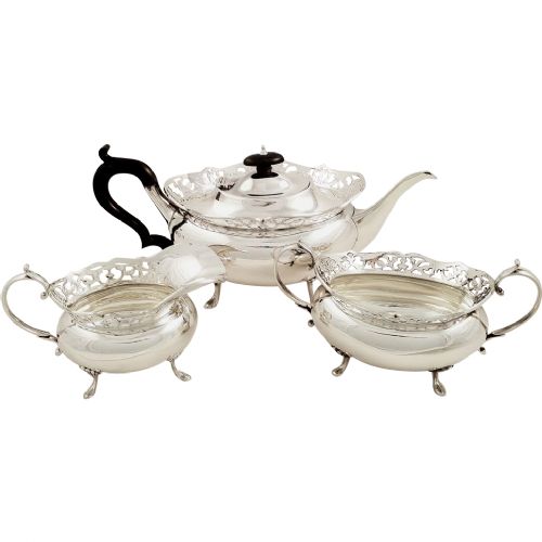 Super Sterling Silver 3 Piece Pierced Rim Tea Set - 1930