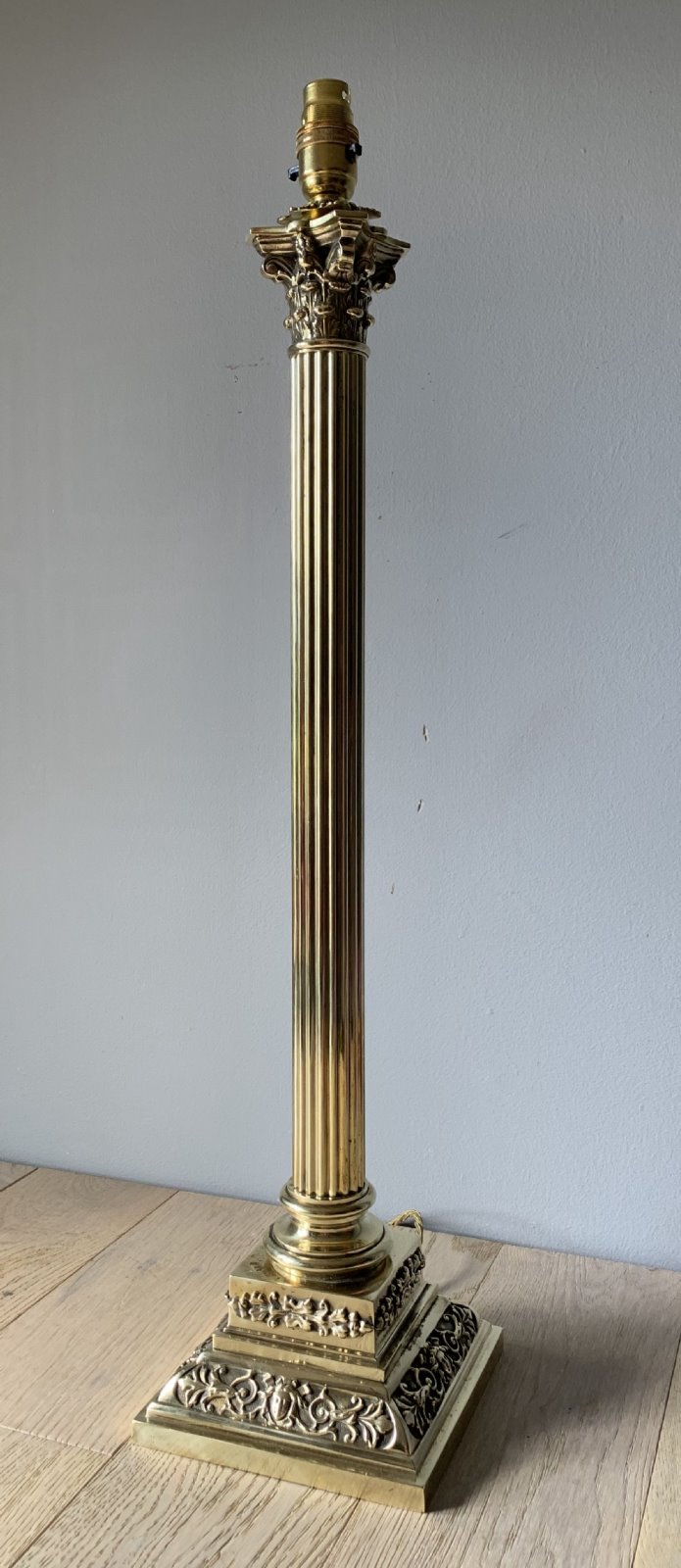 Super Tall Brass Corinthian Column Table Lamp, Rewired and Pat Tested