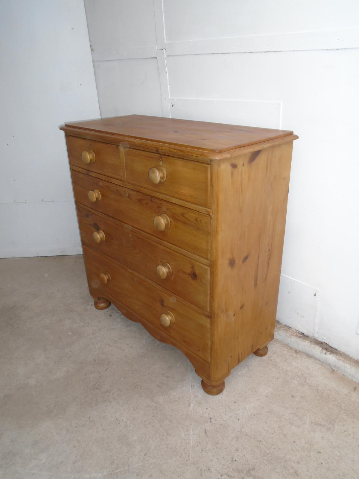 Super Victorian Waxed Antique Pine 5 Drawer Chest of Drawers