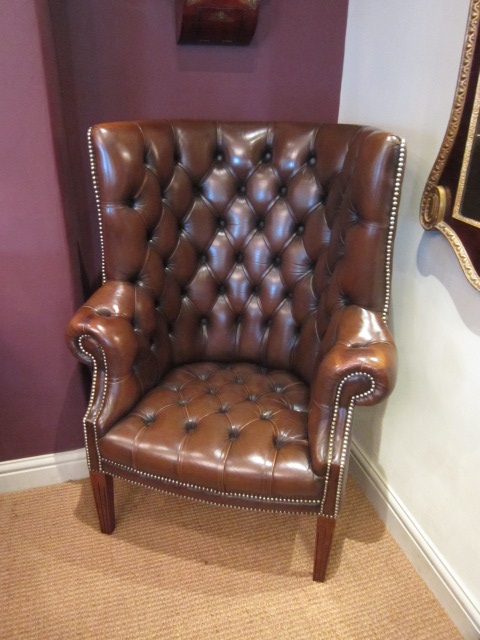 Superb 1920s Leather Barrel Back Porter's Armchair
