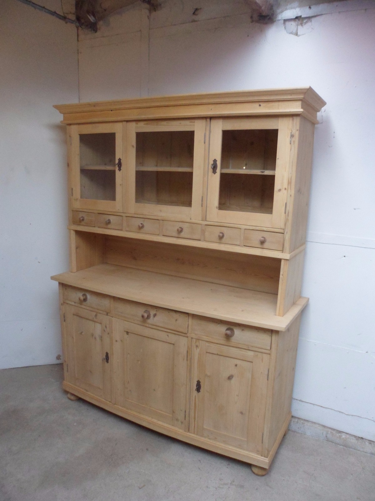 Superb 1930s Art Deco Old Pine Bow Fronted Kitchen Dresser to Wax Paint
