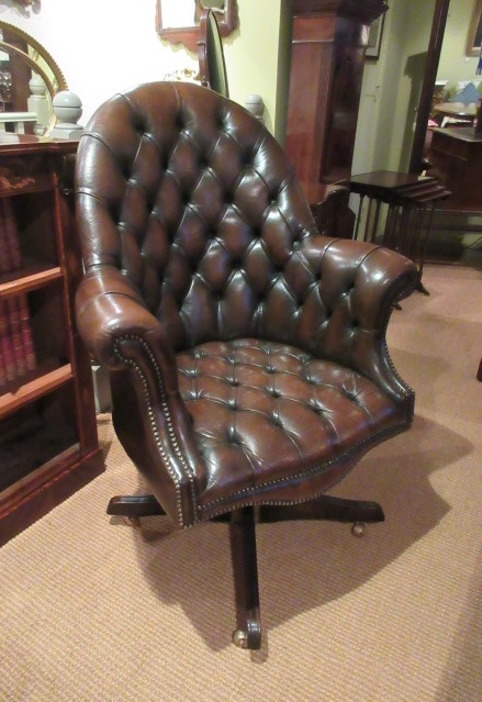 Superb 1930s Leather Swivel High Backed Desk Chair