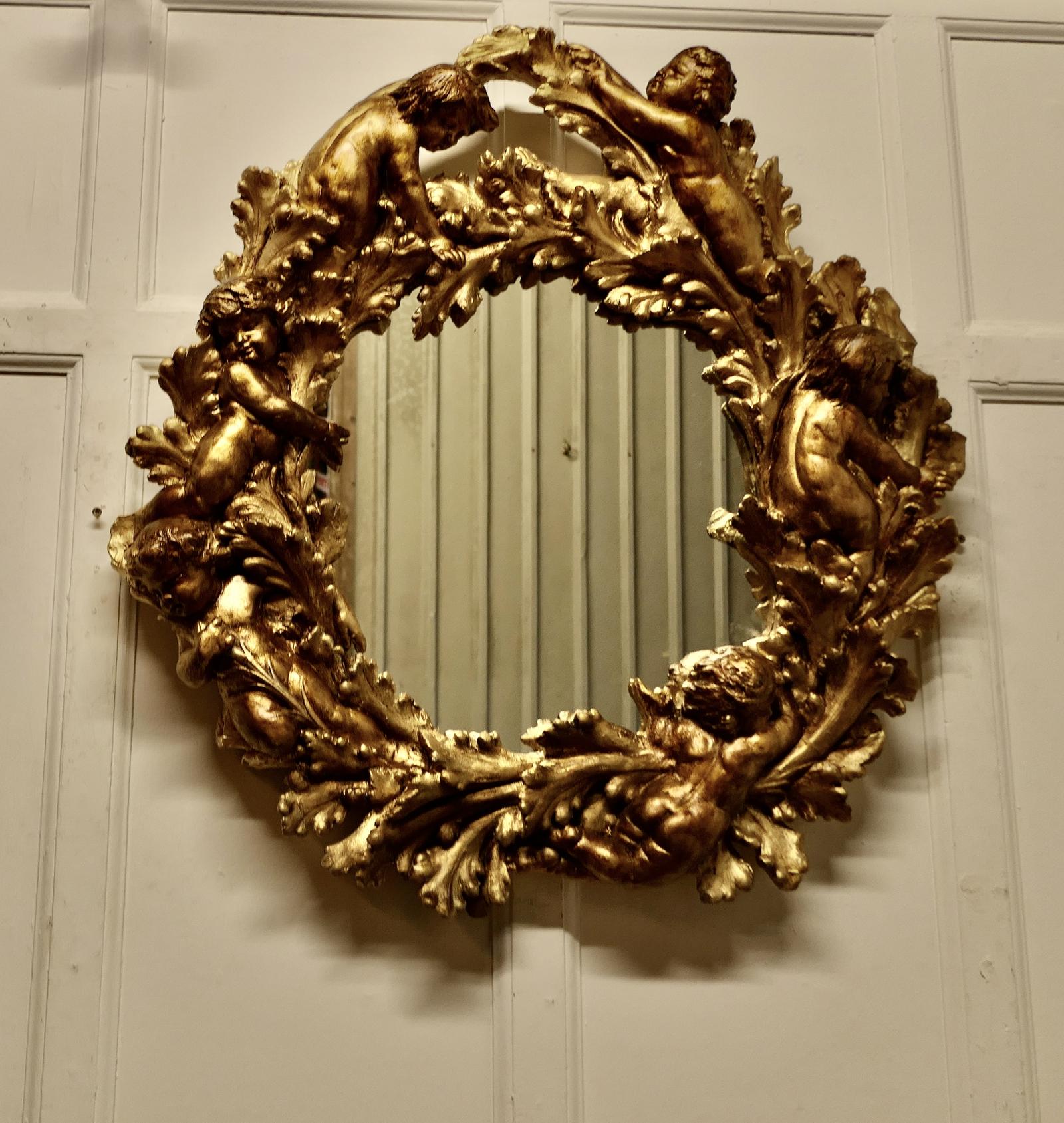 Superb 19th Century Italian Gilt Wreath Mirror