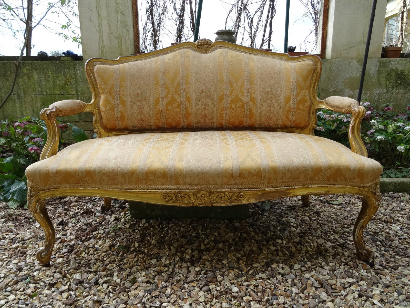 Superb 19th Century Shabby Chic French Louis XVI Giltwood Upholstered Sofa Settee
