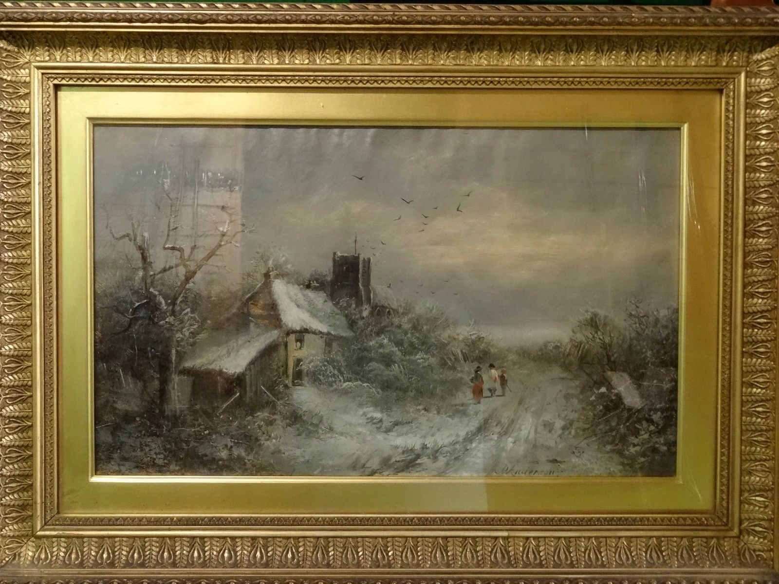 Superb 19th Century Winter Snow Capped Landscape Oil Painting 'P Anderson'