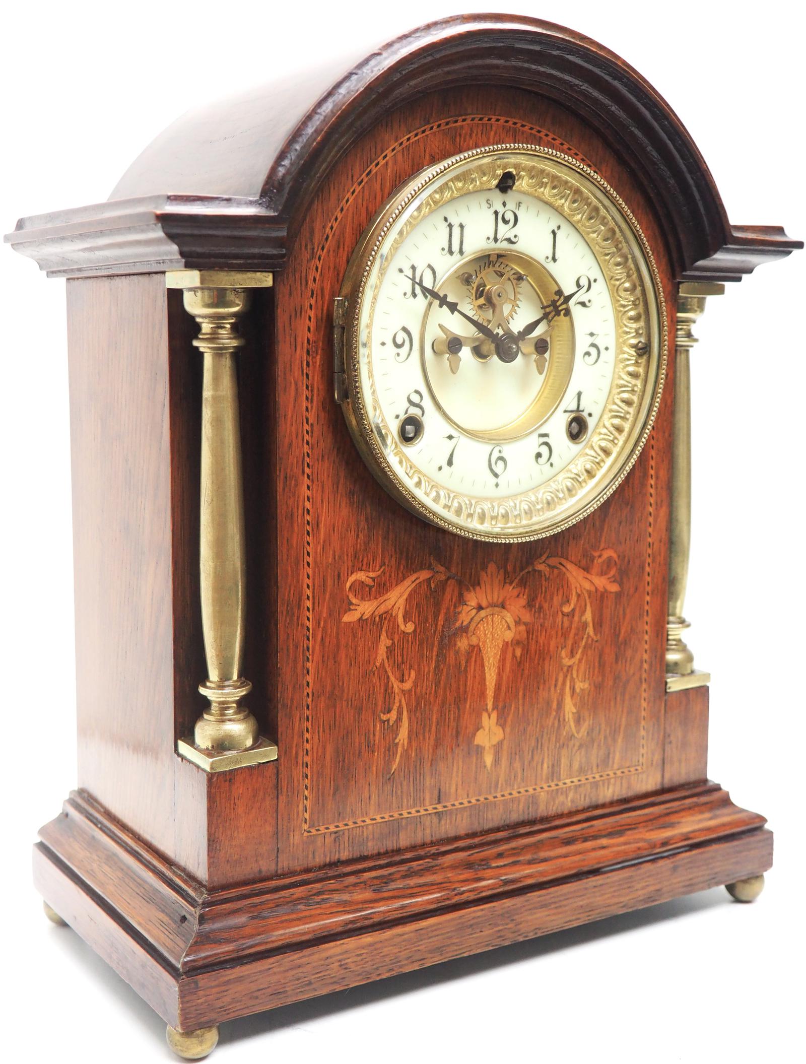 Superb Ansonia Oak Inlaid Mantel Clock Arched Top 8 Day Striking Mantle Clock (1 of 11)