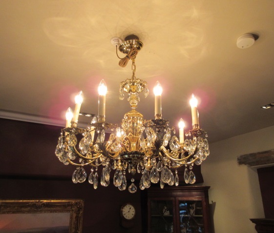 Superb Antique Brass & Crystal Cut Glass Chandelier