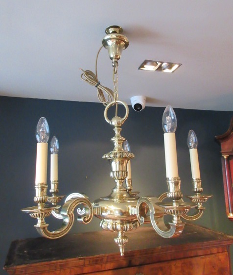 Superb Antique Bronze Five Arm Chandelier c.1910