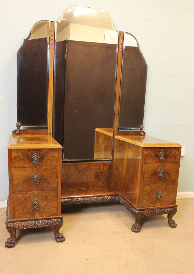 Superb Antique Burr Walnut Triple Mirror Dressing Table