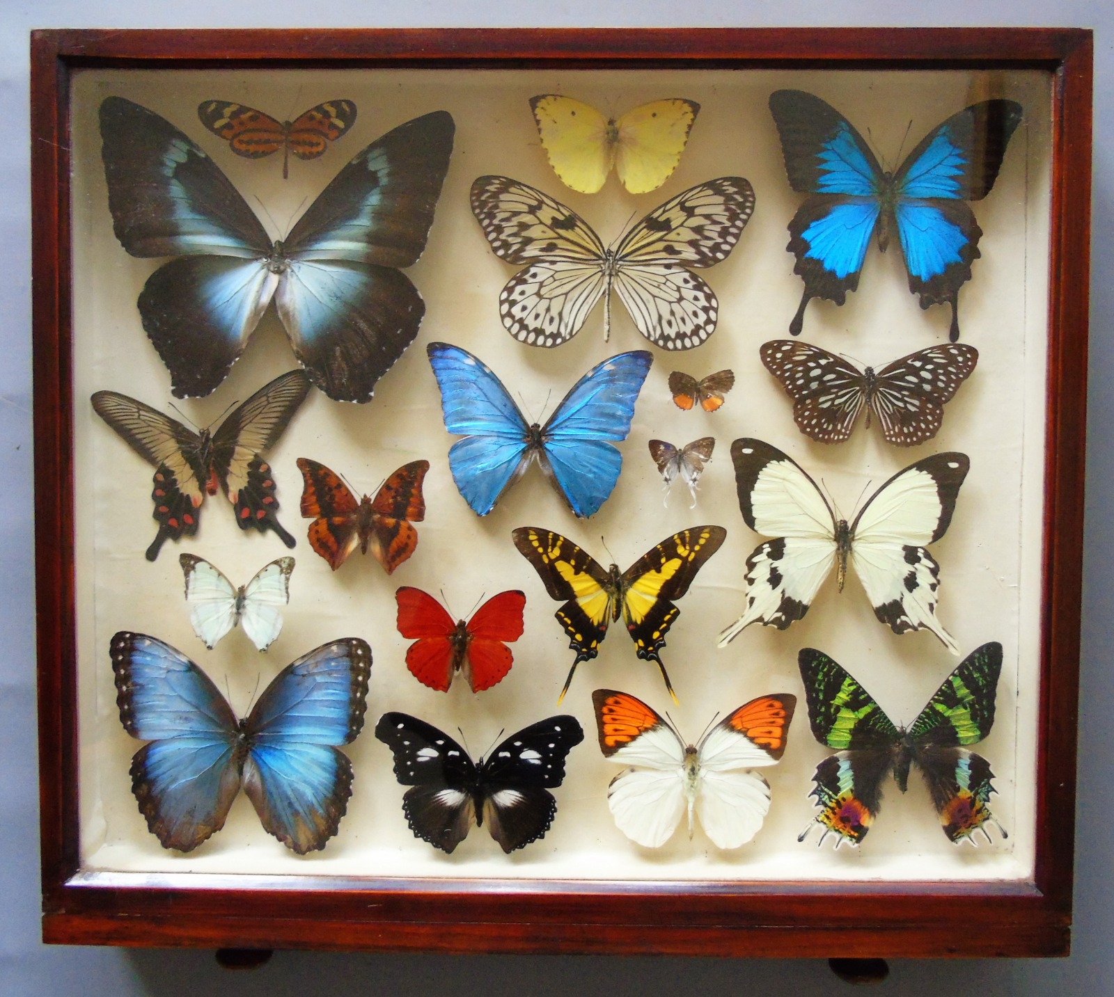 Superb Antique Collection Butterfly Specimens Mahogany Case (1 of 1)
