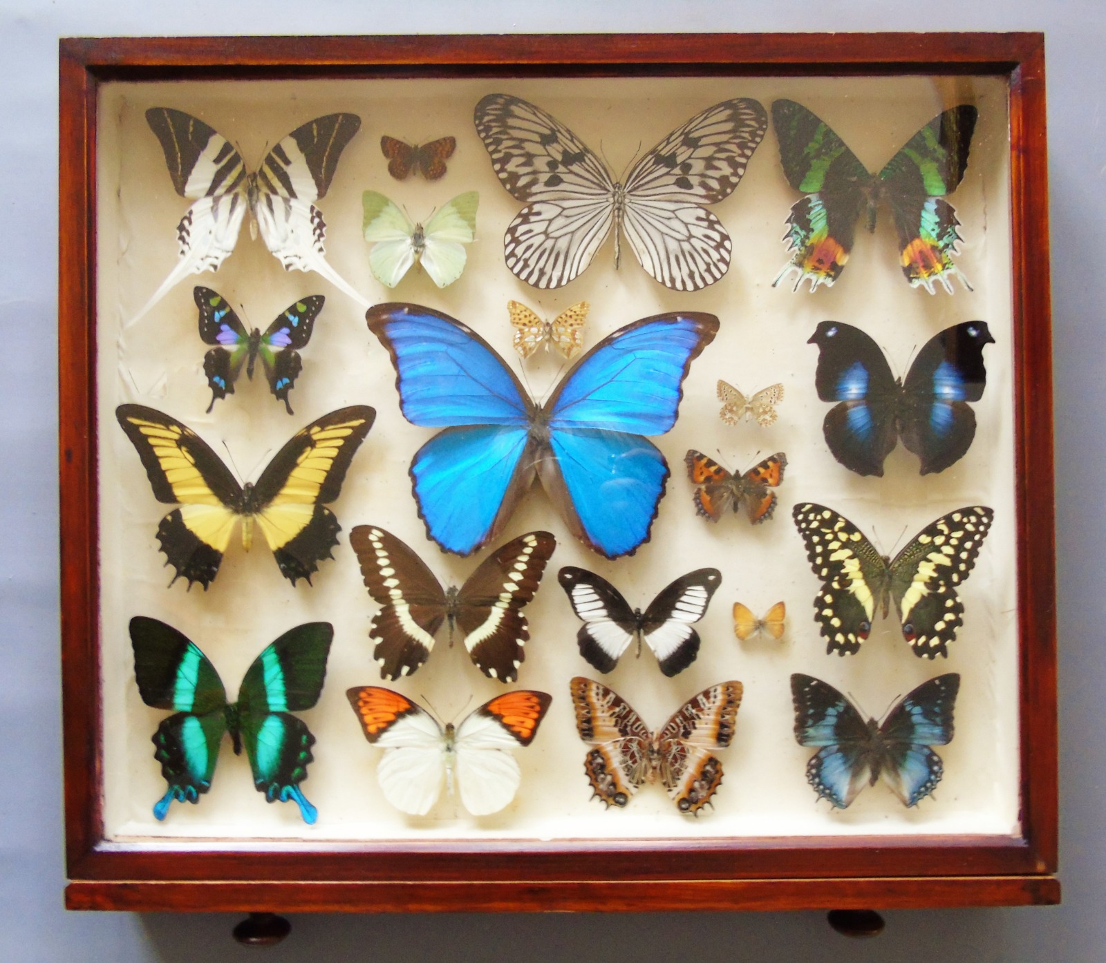 Superb Antique Collection Butterfly Specimens Mahogany Case (1 of 1)