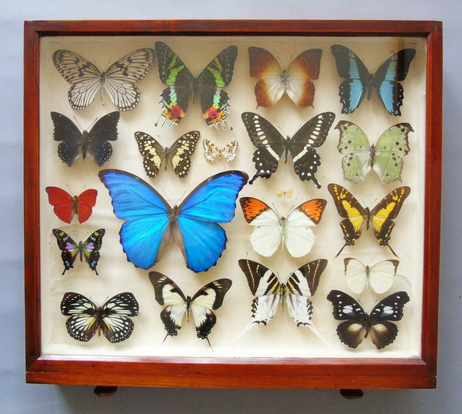 Superb Antique Collection Butterfly Specimens Mahogany Case (1 of 1)