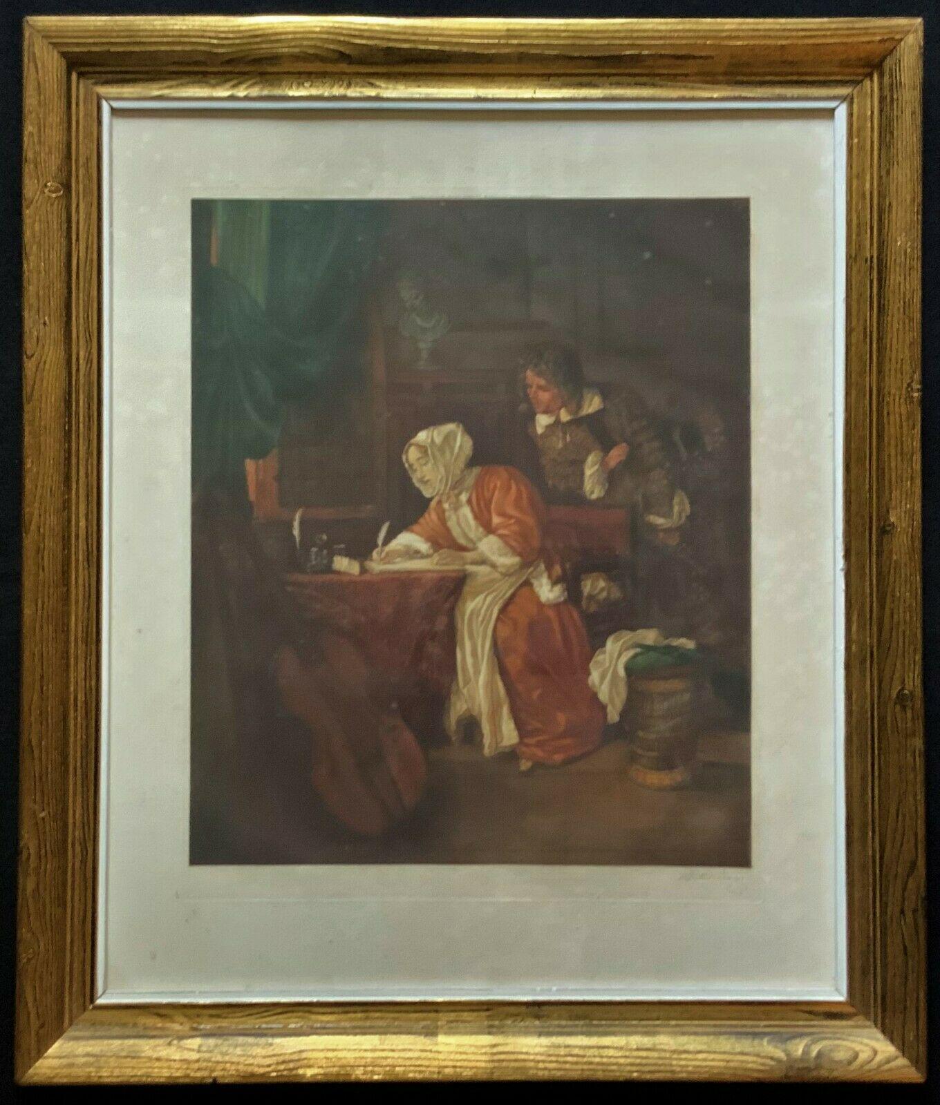 Superb Antique Coloured Mezzotint After Gabriel Metso