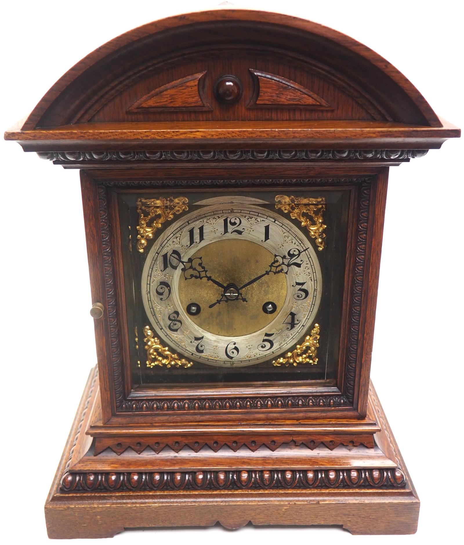Superb Antique German Oak 8-Day Mantel Clock Quarter Striking Bracket Clock by Junghans (1 of 8)
