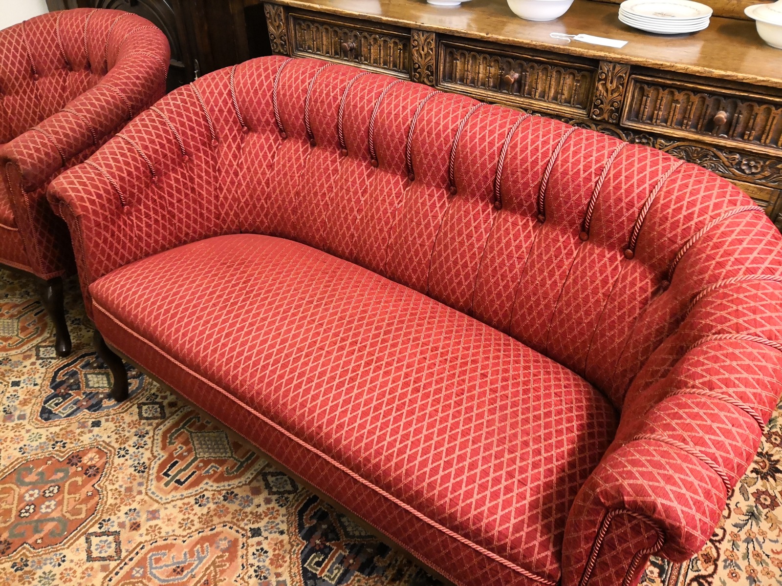 Superb Antique Red 2 Seater Sofa & Chair c.1910