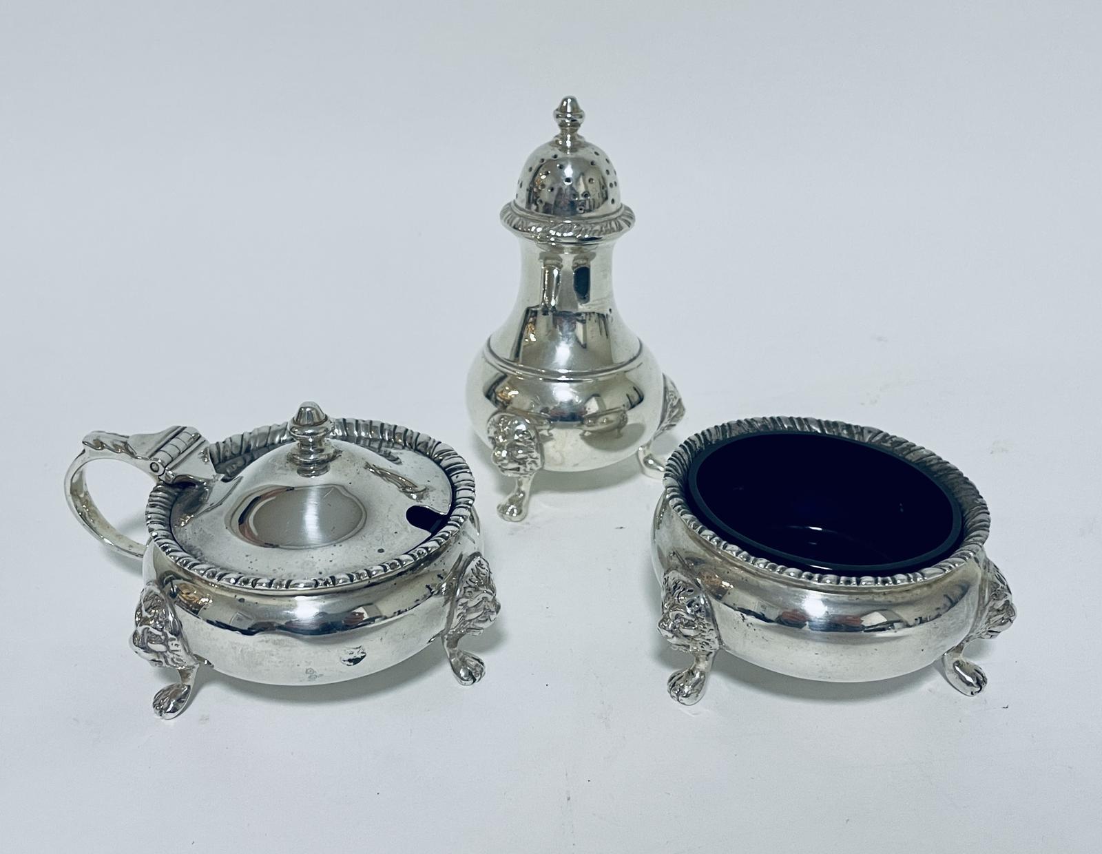 Superb Antique Solid Silver 3 Piece Cruet Set (1 of 13)