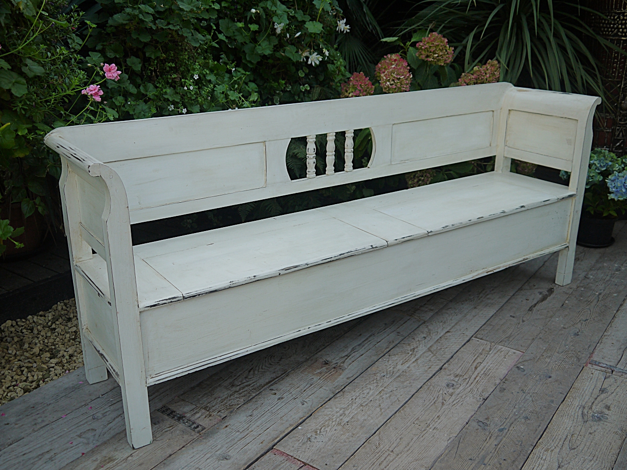 Superb! Antique/Old/Reclaimed Pine Painted White Long Monks Box Bench / Settle / Pew