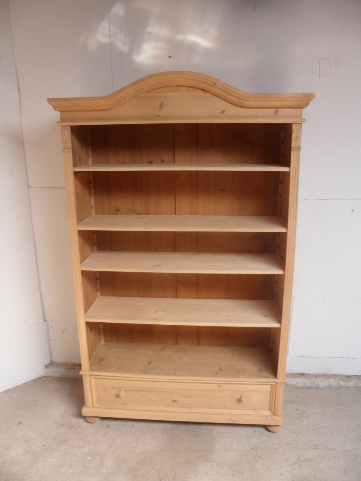Superb Arch Top Antique Pine 1 Drawer Book / Office Shelves to Wax / Paint