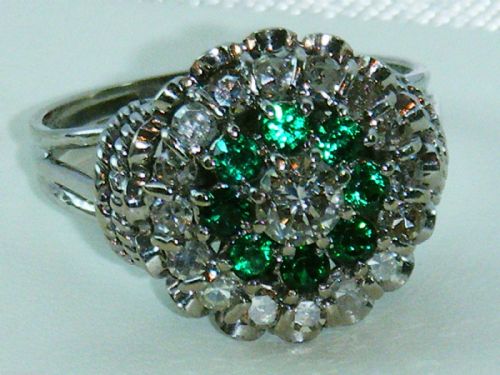 Superb Art Deco 18ct White Gold 1ct Diamond & Emerald Ring