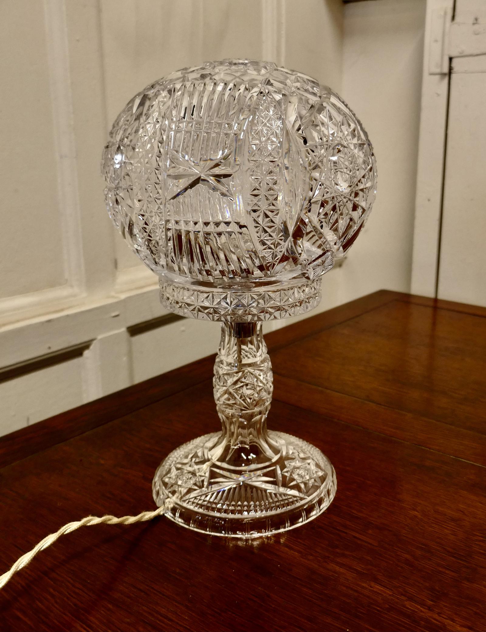 Superb Art Deco Cut Crystal Mushroom Table Lamp
