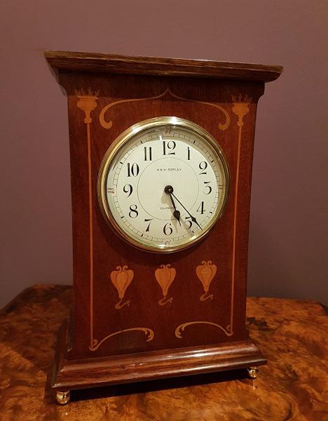 Superb Arts & Crafts Scottish Inlaid Mantel Clock