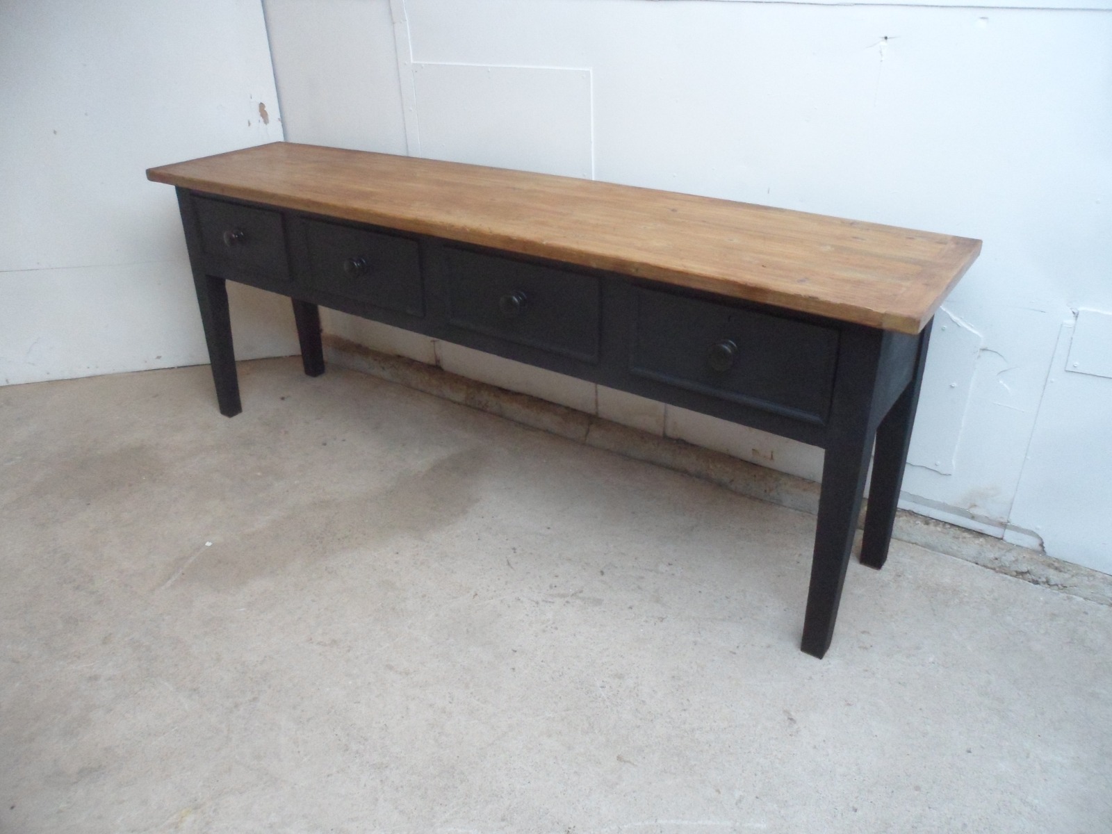 Superb Black Antique Pine Large 4 Drawer Hall Table / Server / Sideboard