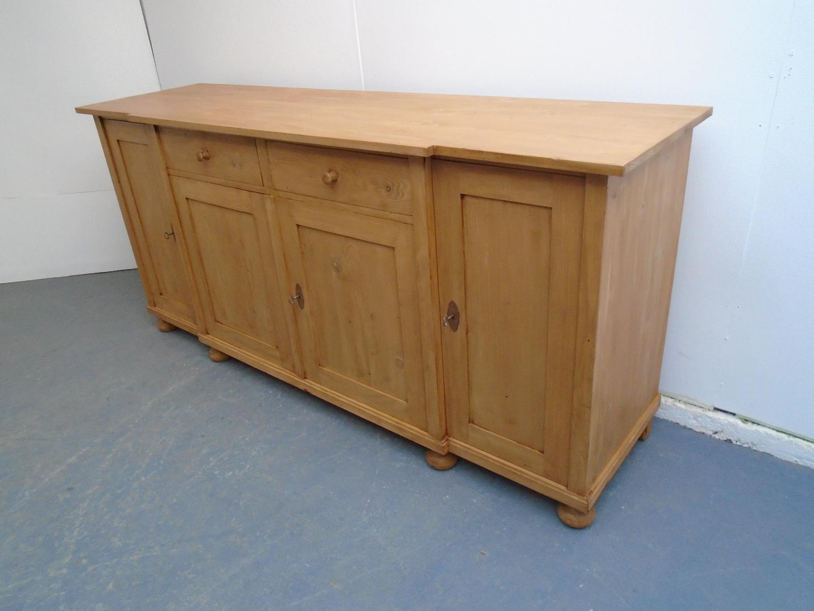 Superb Breakfront Pine Waxed Dresser Base / TV Stand