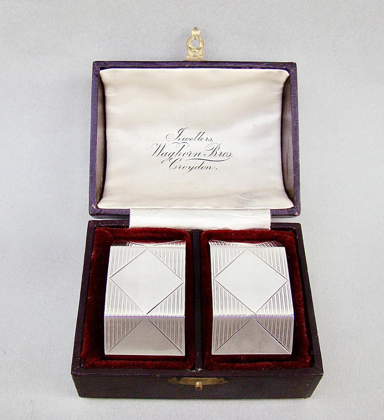 Superb Cased Pair of Art Deco Solid Silver Napkin Rings by Selfridge & Co, Birmingham 1938