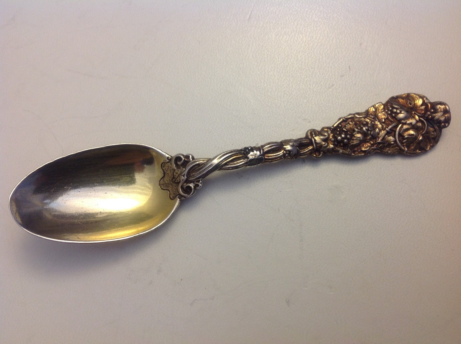 Superb Cast Silver Spoon Decorated with Grapes & Vine Leaves by WM Eaton 1829