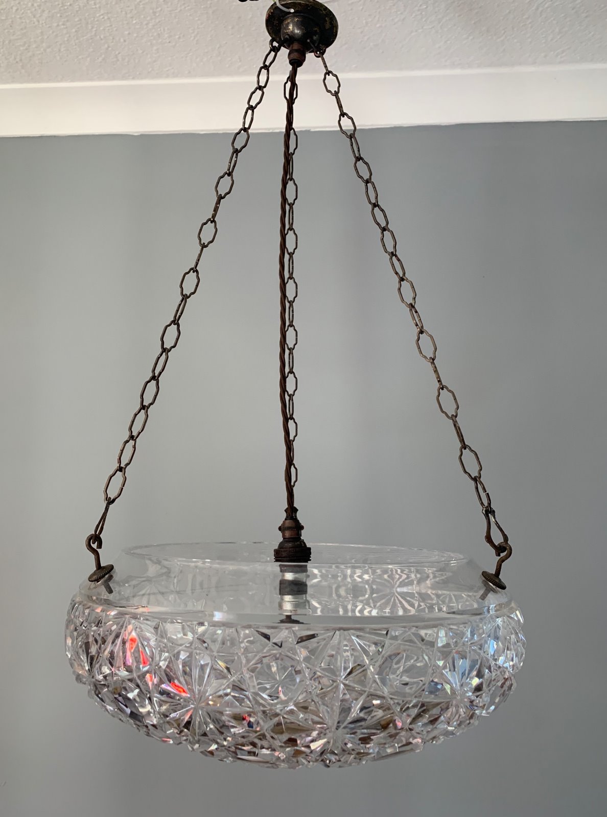 Superb Cut Glass Crystal 1920’s Ceiling Light, Rewired