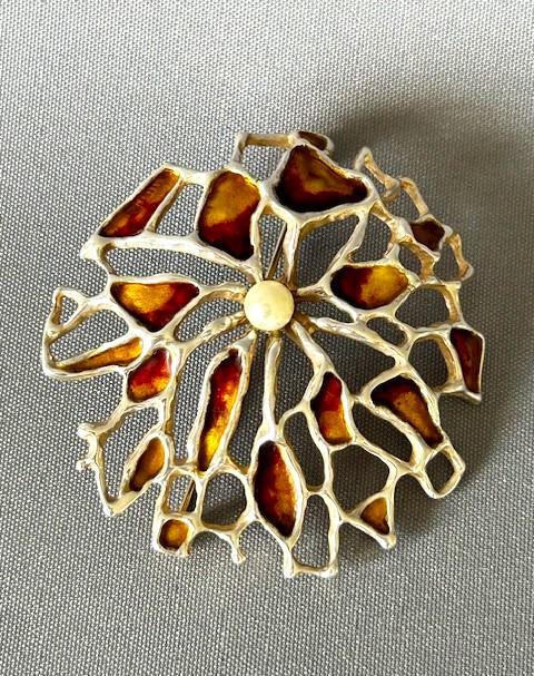 Superb David Andersen Silver & Enamel Brutalist Brooch / Pendant