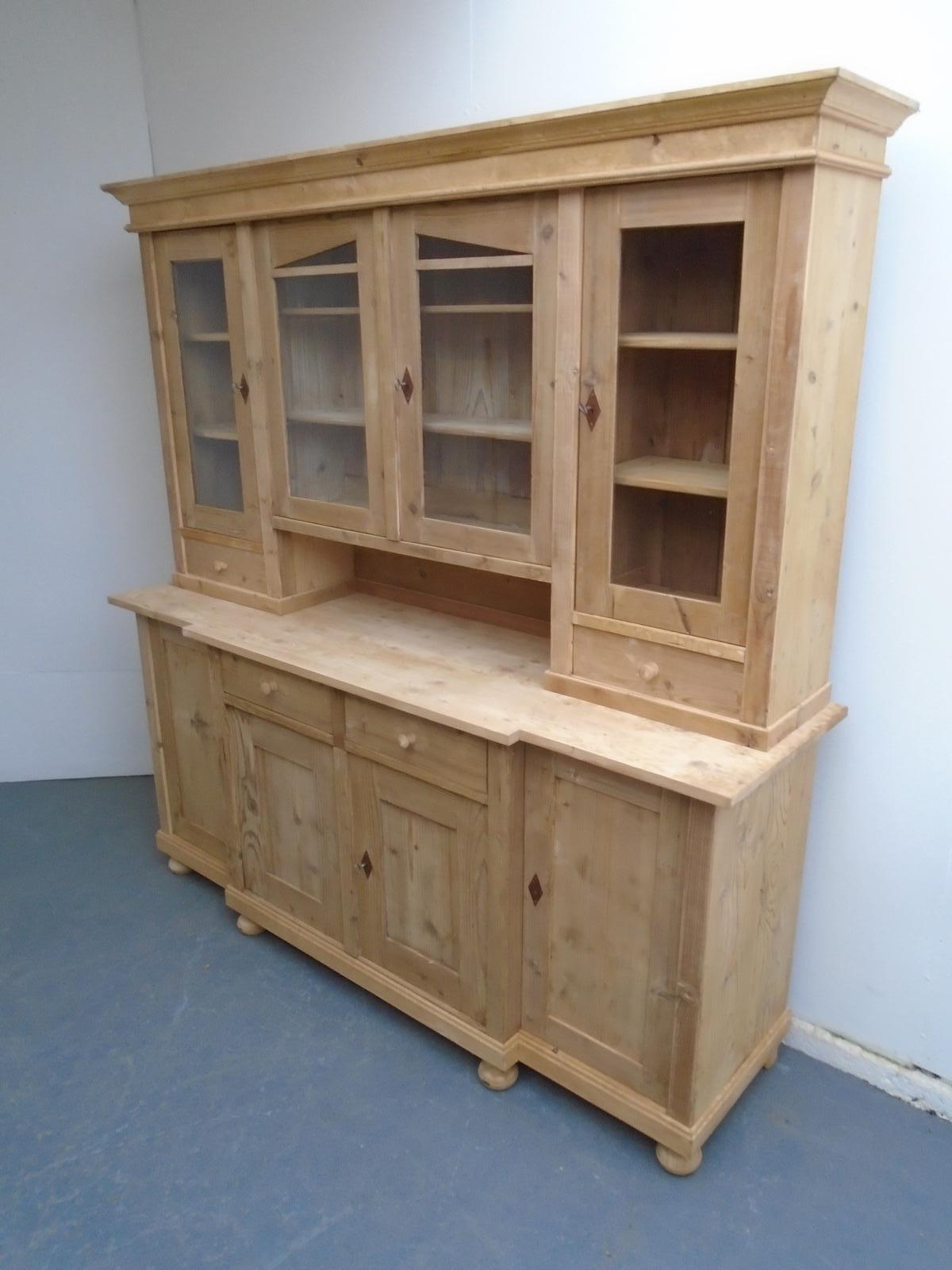 Superb Diamond Breakfront Antique Pine Kitchen Dresser to wax / paint