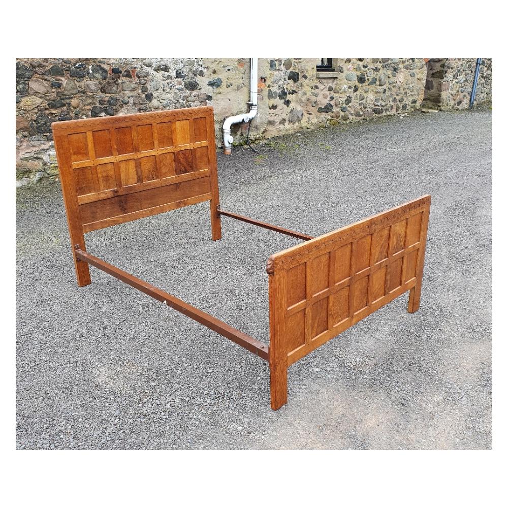 Superb Early Post War Mouseman Oak Double Bed (1 of 7)